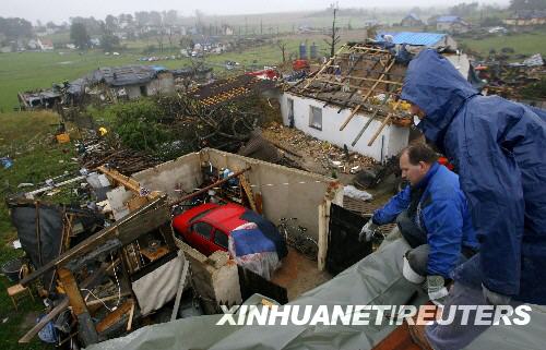 8月16日,在波蘭南部的斯切爾采奧波爾斯基附近,人們正在維修被龍卷風損毀的房屋。據波蘭有關部門說,一場龍卷風15日襲擊了波蘭一些地區,造成3人死亡,另有數人受傷。 新華社/路透
