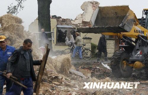 8月16日,在波蘭南部的切爾采奧波爾斯基附近,人們?cè)谇謇肀积埦盹L(fēng)毀壞的房屋廢墟。據(jù)波蘭有關(guān)部門(mén)說(shuō),一場(chǎng)龍卷風(fēng)15日襲擊了波蘭一些地區(qū),造成3人死亡,另有數(shù)人受傷。 新華社/路透