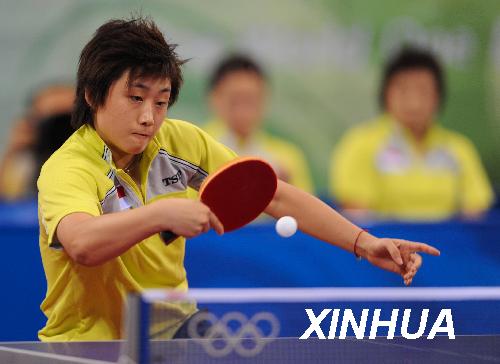 8月17日,新加坡選手馮天薇在比賽中。當日,新加坡隊在北京奧運會乒乓球女子團體決賽中以0比3不敵中國隊,獲得銀牌。新華社記者 徐昱 攝