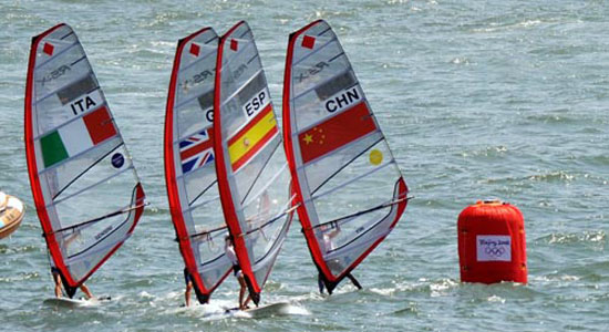 帆板比賽共計(jì)11輪比賽,分前十輪系列賽和最后一輪獎(jiǎng)牌輪。前十輪比賽的成績(jī)?nèi)サ粢粋(gè)最差成績(jī)后排名前十位的選手進(jìn)入最后的獎(jiǎng)牌輪。中國選手殷劍在前十輪系列賽后位居第一,領(lǐng)先第二名上屆奧運(yùn)會(huì)季軍、意大利選手森西尼5分。殷劍在前3輪的比賽中都是遙遙領(lǐng)先其他選手,獲得了第一的名次。之后她的成績(jī)有些起伏,連續(xù)獲得了兩個(gè)第8。好在最后一輪系列賽中,殷劍發(fā)揮出色,又獲得了一個(gè)第一,超越意大利選手森西尼躍居榜首。