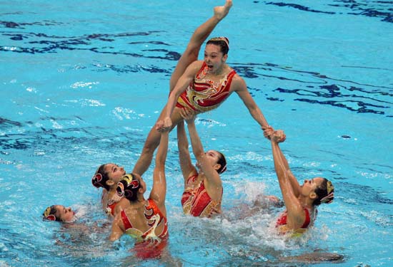 中國“美人魚”終于登上奧運會領獎臺,實現了中國花樣游泳自1988年首次參加奧運會以來的重大突破!在23日下午舉行的北京奧運會花樣游泳集體項目比賽中,她們完美演繹了一曲震撼人心的《黃河》,最終以97.334分的總成績獲得一枚寶貴的銅牌。 中國姑娘在昨天的集體技術自選動作比賽后暫居第三。當天的自由自選動作比賽中,中國隊第五個出場,表現主題為中國龍,背景音樂則是大氣磅礴的《黃河》,還融入了民歌《茉莉花》等元素。 時而如鮮花綻放,時而如蛟龍出海,時而如波浪翻滾,中國“美人魚”的完美表演獲得了觀眾的熱烈掌聲,也得到了裁判的認可。最終,中國隊的自由自選動作得分為48.750分,以總成績為97.334分暫居第一。 隨后出場的日本隊也表現了龍的主題,但整體動作缺乏新意,她們只得到47.167分,總成績為95.334分,與美國隊并列,排在中國和加拿大隊之后。 “水立方”立即傳出熱烈的歡呼聲,中國姑娘知道自己戰勝了實力最為接近的日本隊,她們將首次登上奧運會的領獎臺。 最后兩個出場的分別是實力強大的西班牙隊和俄羅斯隊。俄羅斯隊是連續5屆世錦賽冠軍,同時還在悉尼、雅典兩屆奧運會上包攬了雙人和集體金牌,在20日結束的北京奧運會雙人項目上,她們已經把金牌收入囊中。 最終,裁判對俄羅斯的表現給出了8個滿分10分,她們的自由自選動作得分為滿分50分,從而以99.500分的總成績再次衛冕集體項目冠軍,這也是她們連續三屆奧運會包攬花樣游泳金牌。西班牙隊是雅典奧運會兩個項目的第四名,她們最終獲得集體項目銀牌,這也是她們在北京奧運會上獲得的又一枚花樣游泳銀牌。 中國姑娘和教練相擁而泣,慶祝這來之不易的勝利。 “獲得這塊獎牌是意料之中的事,但當這一切真的降臨了,還是覺得特別激動!”曾三次參加奧運會的隊長張曉歡激動地說,“堅持這么多年,我們終于有了收獲!” “中國給我這么大的信任,能取得奧運會獎牌當然很開心!”來自日本的中國隊教練井村雅代開心地說,“這是我的夢想,今天我們終于夢想成真;中國姑娘訓練十分刻苦,獎牌就是她們的目標。” 曾多次帶領日本隊獲得奧運會獎牌的井村雅代還說:“作為日本教練帶領中國隊獲得獎牌,說明日本教練的水平得到世界的認可。” 雅典奧運會亞軍日本隊最終與美國隊獲得并列第五,日本隊的小林寬美出現賽后虛脫,同時正是由于小林寬美力量不夠,在最后階段腳底觸到水池底部被扣分,影響了日本隊的積分排名。加拿大隊在比賽中表現了中國十二生肖的主題,她們最終獲得第四名。