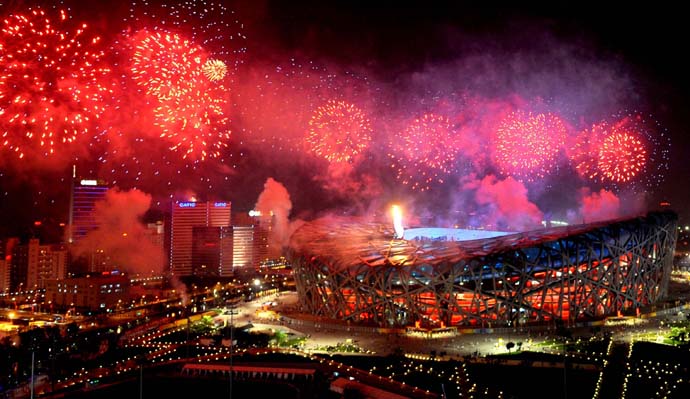 8月24日,第29屆夏季奧運會閉幕式在國家體育場——“鳥巢”舉行。這是閉幕式上燃放的焰火。