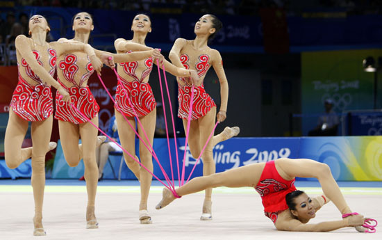 中國藝術(shù)體操新的歷史24日在北京工業(yè)大學體育館書寫。中國姑娘們在奧運會藝術(shù)體操比賽中,以35.225分歷史性地奪得集體全能銀牌,這也是中國藝術(shù)體操的首枚奧運會獎牌。 實力超群的俄羅斯隊以35.550分奪得金牌,再次包攬奧運會藝術(shù)體操兩金。白俄羅斯隊以34.900分奪得銅牌。 北京奧運會藝術(shù)體操項目設(shè)個人全能和集體全能兩枚金牌。此前,中國藝術(shù)體操的歷史最好成績是亞特蘭大奧運會的第五名。24日的決賽中,中國藝術(shù)體操姑娘們在家門口大放異彩。她們動作編排精美,整體配合默契,在首輪5繩比賽中,就奪得第三名,超過主要競爭對手意大利隊0.575分。 次輪3圈+2棒的比賽中,伴著京劇傳統(tǒng)音樂開場,中國姑娘們時而如飛鳥凌空展翅,時而如孔雀驚艷開屏,甜美的笑容打動了全場觀眾。堪稱完美的表現(xiàn)令中國隊得分超過白俄羅斯隊,一舉奪得集體全能銀牌。看著最終的得分大屏幕,中國藝體姑娘們高興地擁抱在一起,哭成一團。她們創(chuàng)造了中國藝術(shù)體操新的歷史。 俄羅斯隊在決賽中再次展示了在藝術(shù)體操領(lǐng)域的“霸主”地位。兩輪的全場最高分讓她們再次包攬了北京奧運會藝術(shù)體操的兩枚金牌。這也是從悉尼奧運會開始,俄羅斯隊連續(xù)三屆奧運會實現(xiàn)個人全能和集體全能金牌的包攬。 賽后,中國隊的主力隊員章碩高興地說:“完全沒想到能拿到銀牌。我們創(chuàng)造了中國藝術(shù)體操最輝煌的一刻。為了這一刻,我們奮斗了這么久,吃了很多苦。今天,我們做到了最好。今天,所有付出都得到了回報。” 對于奪得亞軍,中國隊教練白梅說:“其實,中國隊的姑娘們訓練特別艱苦,每天的訓練都是在超越自己。今天的成績也是她們團結(jié)一致、一起拼搏的結(jié)果。”