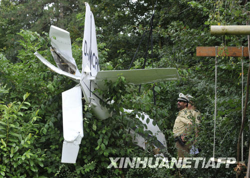 8月25日,在德國城市科隆,兩名警察在一座莊園內查看墜毀的機動滑翔機。新華社/法新