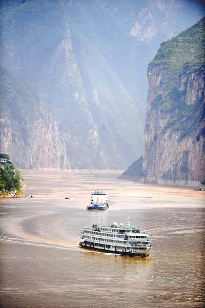 圖為8月23日,船只經過長江瞿塘峽夔門。