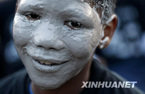 9月7日,在南非瑟德堡地區,一名兒童將油彩涂在臉上參加“生命的景觀”活動。這項一年一度的活動旨在宣傳該地區土著民族科伊-桑人的文化傳統。 新華社/路透