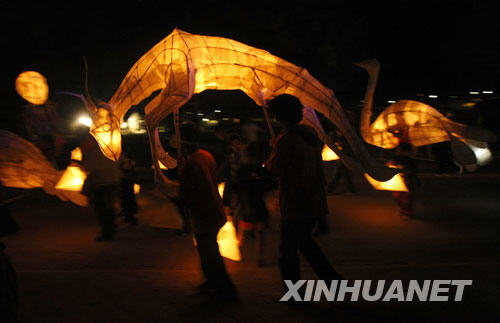 9月7日,在南非瑟德堡地區,當地兒童攜燈籠參加“生命的景觀”活動。新華社/路透