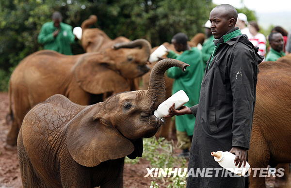1月10日,在肯尼亞首都內(nèi)羅畢的大象孤兒院,一名飼養(yǎng)員喂養(yǎng)幼年大象。大象“孤兒院”自成立至今已成功救助了130多頭幼象。目前孤兒院每天對(duì)外開(kāi)放1小時(shí),其間由工作人員向觀眾介紹幼象的生長(zhǎng)狀況、有關(guān)非洲象的基本知識(shí)等,并呼吁人們抵制偷獵行為、關(guān)愛(ài)野生動(dòng)物。新華社/路透