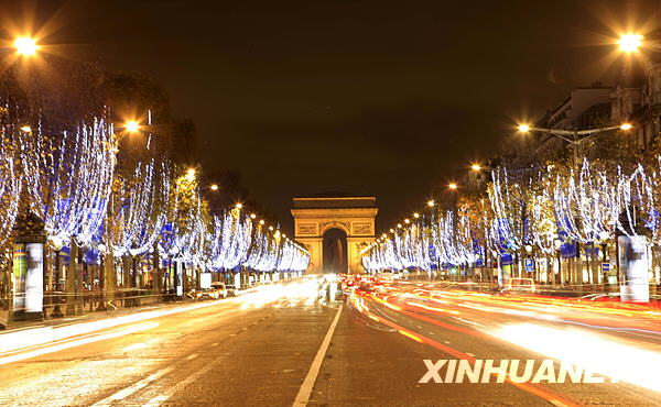 11月19日晚,圣誕彩燈照亮法國巴黎的香榭麗舍大街。