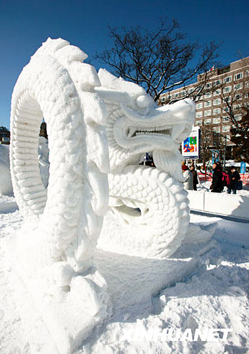 2月9日,在日本北海道札幌市舉行的第60屆札幌冰雪節上,游人從中國香港藝術家創作的“舞龍”雪雕前走過。這座位于主會場大通公園的雪雕以其濃郁的中國元素,備受游人矚目。據了解,這也是中國香港藝術家第34次參加札幌冰雪節。