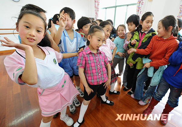 3月9日,學生模特向同學們展示不同款式的夏季新校服樣品。當日,由不同廠家設計的數十款夏季新校服樣品在南京市長江路小學由學生試穿、看樣。這批校服樣品是在學生及家長代表對新校服款式、價格和安全舒適性等進行第一輪看樣評議后,請廠家重新修改設計的,各款樣裝將在學校網站上公示,最終由學生投票決定選用哪種校服。