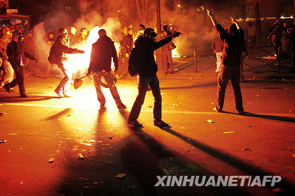3月19日,人們在法國巴黎街頭示威。法國各大工會當(dāng)日在全國各地聯(lián)合組織罷工和示威游行等活動,抗議政府在應(yīng)對當(dāng)前經(jīng)濟(jì)危機過程中忽視勞動者權(quán)益和社會福利。新華社/法新