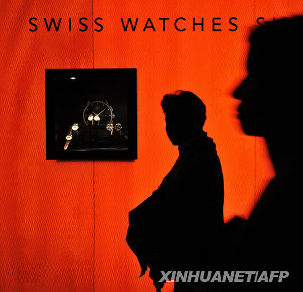 3月25日,在瑞士北部城市巴塞爾舉行的2009巴塞爾名表珠寶展媒體開(kāi)放日上,一名參觀者的影子反射在展廳的玻璃墻上。新華社/法新 |