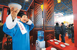 | 圖為北京老舍茶館的工作人員在文博會(huì)上展示北京大碗茶。新華社記者 李文攝 | 為期5天的第三屆中國(guó)北京國(guó)際文化創(chuàng)意產(chǎn)業(yè)博覽會(huì)日前在北京成功舉行。此次文博會(huì)以“文化創(chuàng)意與服務(wù)貿(mào)易”為主題,提供了交流和交易新平臺(tái),來(lái)自全國(guó)16個(gè)省區(qū)市的1370家參展商以及韓國(guó)、美國(guó)、日本等國(guó)代表團(tuán)參加。