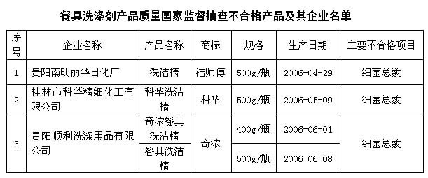 餐具洗滌劑行業抽查的主要質量問題有細菌總量超標和總活性物含量不穩定。