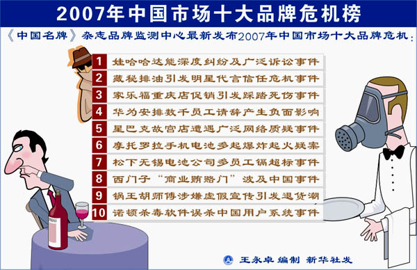 2007年中國市場十大品牌危機榜[圖表]
