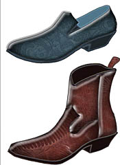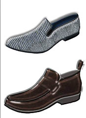 男鞋鞋型的更新途徑是通過對男鞋式樣的精心設計和對所用材料的明顯處理加工而完成的。與之前的幾季相比,2009/2010秋冬季男鞋流行趨勢并沒有完全脫離過去,來一次突破性的變革。但是,朝著更優雅的方向發展已是顯而易見的了。男鞋款式更豐富而且裝飾性更強是本季不同于以往的一個明顯變化。 ELECTROPOP品牌男鞋通過科技革新完成了對流行文化的一次重新創造。超出足部本身尺寸的超大體積是20世紀80年代的典型特點。在用材方面,真皮與高科技織物成為鞋面材質的主要選擇。使用加長的、符合人體工學設計的真皮鞋底,當然也有橡膠質地的鞋底。在樣式上,工裝式的圓頭皮鞋,彎曲度靈活的膠底運動鞋,如跑步鞋或拳擊鞋等將大行其道。這些鞋在設計上同樣也用到了閃亮的材質以體現其質感。 CAFÈCHANTANT品牌男鞋充滿樂觀而有趣的情調,是20世紀初期鞋型的審美取向。尺寸合腳而且鞋底鞋跟也是力求越小越低越好。鞋的用料非常豐富,同時兼顧到時尚與現代感,光滑、無雜質的真皮與小牛皮的運用與表面設計有復雜紋理的鞋面形成鮮明對比。頻繁的應用立體與印花圖案也是其特點之一。式樣有些是錐形設計,而有的便鞋則借鑒了一些優雅設計風格。有些是圓頭的,有些是馬鞍形的鞋頭,還有一些是寬頭鞋。值得一提的是,這些鞋都非常柔軟,那種裹腿的騎馬靴也不例外。
