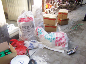 四合院出租房屋內制造假冒劣質胡椒面制假現場