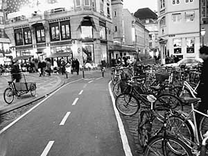 丹麥有自行車王國之稱,為了保護環境,節省能源,越來越多的丹麥人選擇騎自行車出行,丹麥500多萬人口的國度擁有自行車420萬輛。圖為哥本哈根市中心的自行車道。本報記者 丁剛 攝