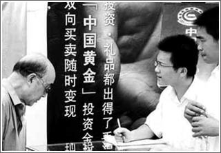一年開設47家分公司,這是寶鑫金業創造的布點速度。 成立于2006年9月的寶鑫金業,是一家注冊資本500萬元,經營范圍涵蓋黃金、鉑金飾品的加工、銷售,珠寶、玉器的銷售以及黃金交易代理及咨詢服務的新企業。 這樣一家名不見經傳的公司,為何能快速布點并誘導大量投資者“上鉤”呢?記者調查發現,這主要是因為寶鑫金業惡意利用了三大“誘餌”: 誘餌一——企業品牌。“福輝”品牌創建于1984年。公司下設六家專業首飾生產加工基地和一個檢測中心,已形成集團化、專業化的珠寶首飾加工、出口、內銷的經營網絡,是國內首家在港上市的珠寶企業,也是上海黃金交易所綜合類會員單位。為取得投資者的信任,寶鑫金業在“客戶協議書”中大肆宣傳所謂的“福輝標準金延期交收業務”,給人此項業務與福輝公司密切相關的誤導。對此,福輝公司強調,公司并無此項業務。 誘餌二——公司授權。為使投資者深信不疑,寶鑫金業特別將福輝公司的“授權書”放在“客戶協議書”的突出位置!笆跈鄷狈Q:“茲授予福建省寶鑫金業有限公司代理福建省福輝珠寶有限公司開展上海黃金交易所黃金延期交收及咨詢業務。時間為2007年3月1日至2008年2月28日!蓖顿Y者也因此打消了顧慮。 誘餌三——辦公場所。為了制造“福輝和寶鑫是合作伙伴”的假象,寶鑫金業還租下了福輝珠寶城四樓A區的辦公場地,設立了“寶鑫黃金交易中心”,從事所謂“福輝標準金延時交收業務”的交收及咨詢業務。許多投資者正是到現場參觀后,才充分相信寶鑫公司,并大膽參與此項投資。