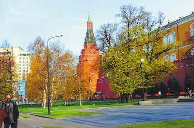 飛臨莫斯科上空,代表團的成員都為機窗外那一眼望不到邊的綠色而驚喜。茂密的森林,廣闊的湖面,蔥蘢的山丘,擁抱著這座城市。 應俄羅斯新聞社的邀請,以副總編輯米博華為團長的人民日報代表團于10月底訪問了俄羅斯。在俄新社朋友們的精心安排下,我們參觀了環境優美、設施先進的俄新社新聞中心,參觀了莫斯科主要的名勝古跡。足跡所至,親身感受到莫斯科是一座“森林城市”。 莫斯科位于奧卡河與伏爾加河之間,城區散布在七個山丘上。目前,每人平均擁有綠地30多平方米,綠化面積占全市面積的33%,有11片自然森林,近100座占地約2000公頃的風格各異的公園、800多個街心花園。