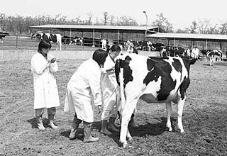 畜牧獸醫(yī)是一群扎根農村,服務農民的鄉(xiāng)士實用人才。在新農村建設與扶農、富農過程中,他們承擔著重要的歷史使命。圖為一所畜牧獸醫(yī)職業(yè)院校的學生在山東濰坊畜牧科技示范園的奶牛養(yǎng)殖場頂崗實習,熟練掌握從飼料配制、奶牛養(yǎng)殖與病疫防治,到奶制品加工等整條產業(yè)鏈的運作情況。王洪濤