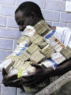 當地時間3月18日,津巴布韋新任財政部長滕達伊·比蒂宣布,本國貨幣津巴布韋元的“死亡”已成現實,從去年10月份開始,津元就在垂死掙扎,現在已不再流通。 比蒂是在向議會陳述2009年財政預算修改草案時說這番話的。他說,為了增強企業的生存能力,同時考慮到所有交易都使用外幣結算,政府決定廢除企業向中央銀行繳納其外匯總收入5%的規定。他還說,政府從即日起廢除使用本國貨幣和外幣雙重定價的強制性法律。 分析家認為,取消強制使用本國貨幣定價的制度,實際上等于承認本國貨幣已不復存在的事實。 津巴布韋自從2000年實行“快車道”土地改革政策以來,在西方國家的制裁下經濟發展就開始走下坡路。尤其是近兩三年來,該國政界斗爭引發的政治危機給國家經濟帶來了災難,通貨膨脹率達到天文數字,成為國際社會廣泛關注的熱點。第一代津巴布韋元是1980年該國獨立時開始發行的,它取代了原來的羅得西亞元。當時1津元相當于1.47美元。但由于惡性通貨膨脹,貨幣貶值,2006年津央行不得不從原貨幣面值上去掉3個零,發行了第二代津元。2008年8月,津央行從津元面值上去掉10個零發行了第三代津元。今年2月,央行又從第三代津元面值上去掉12個零發行了第四代津元。 津元作為國家主權的象征之一是否會真的退出歷史舞臺,津政府會不會采取新的措施挽救它,人們只能拭目以待。(據新華社報道)