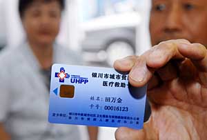 | 城市低保戶田萬金正展示剛領到的城市貧困人口醫療救助卡。近日,銀川市城市貧困人口醫療救助卡開始發放,全市4萬多名城市低保戶將逐步實現門診、購藥、住院等醫療救助“一卡通”服務。新華社記者