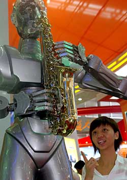 | 娛樂機器人在高交會上吹奏薩克斯管。新華社記者 周文杰