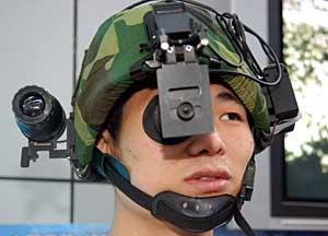 | 一位客商在高交會上試用一款高清晰度紅外線夜視儀。新華社記者 周文杰