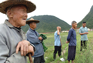 | 福建光澤縣鸞鳳鄉(xiāng)中坊村八十多歲的老人趙刻均(左一)和村里的幾位老農(nóng)。新華社記者 張國俊