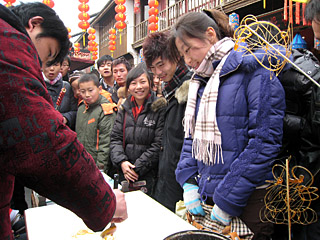 | 在杭州著名的仿古步行街河坊街上,具有濃郁中國民間風味的手工藝品受到了各地游客的熱捧。新華社記者 黃深鋼