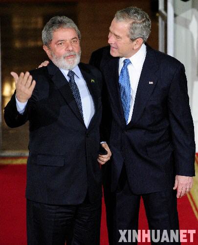 11月14日,美國總統(tǒng)布什(右)在白宮迎接前來出席二十國集團領(lǐng)導(dǎo)人金融市場和世界經(jīng)濟峰會的巴西總統(tǒng)盧拉。二十國集團領(lǐng)導(dǎo)人金融市場和世界經(jīng)濟峰會將于11月15日在華盛頓舉行。除二十國集團成員領(lǐng)導(dǎo)人外,聯(lián)合國、世界銀行、國際貨幣基金組織、金融穩(wěn)定論壇等國際機構(gòu)負責(zé)人也將出席峰會。